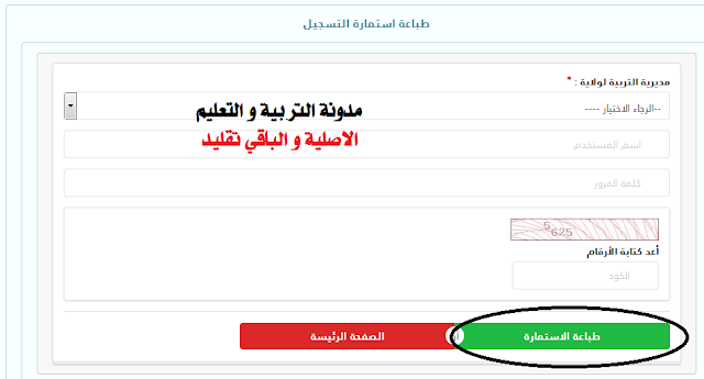 - تقوم بالدخول الى موقع التسجيلات concours.onec.dz و عوض أن تضغط على الزر الخضر قم بالضغط على الزر الأحمر ( طباعة الاستمارة ) و كنا قد تكلمنا عن هذه النقطة في موضوع سابق